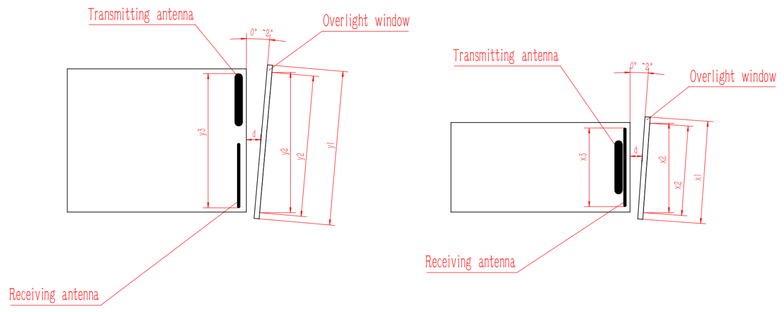 Luftgapet d mellan det optiska fönstret och avståndsmätaren bör vara så litet som möjligt. Det optiska fönstrets effektiva öppning x2 - ytterdiametern på det optiska fönstret x1>2 mm