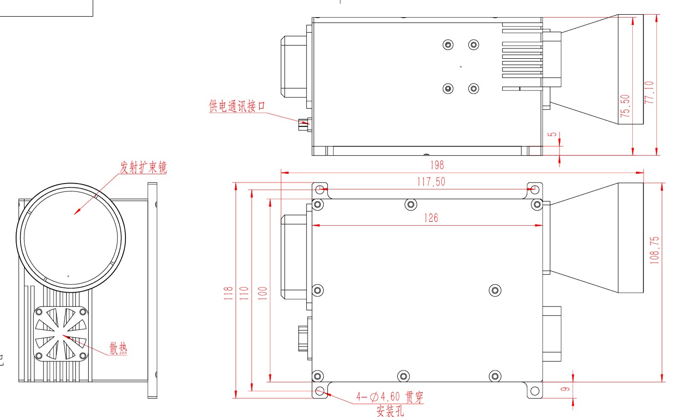 Denna typ av bestrålare använder en unik ljuskälldesign för att uppnå upp till 60MJ laserutgång i en mycket liten strukturell storlek, och pulsbredden är mer än 10N, och den initiala laserdivergensvinkeln är 50% mindre än den konventionella produkten. Bestrålaren använder en enda bländardesign av utsläpp och mottagning, kompakt struktur, kan användas i fotoelektrisk hangar, fordonsbestrålning och andra applikationsscenarier.