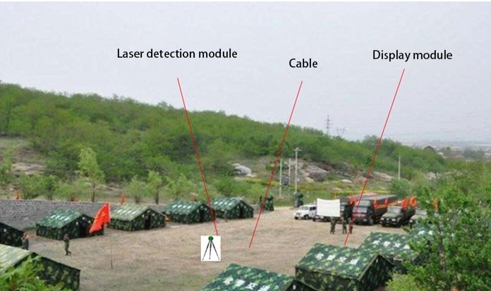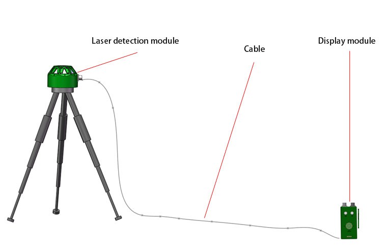 Laserdetektorn består huvudsakligen av en laserdetekteringsmodul och en displaymodul. Laserdetekteringsmodulen kan monteras på toppen av ett stativ eller fordonsplattform och kan uppnå 360° azimutdetektering. Displaymodulen används för att visa laserinformation för personal.